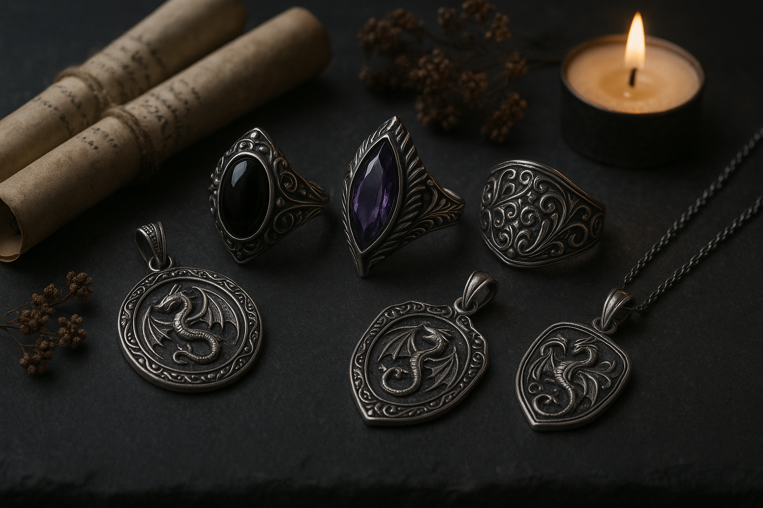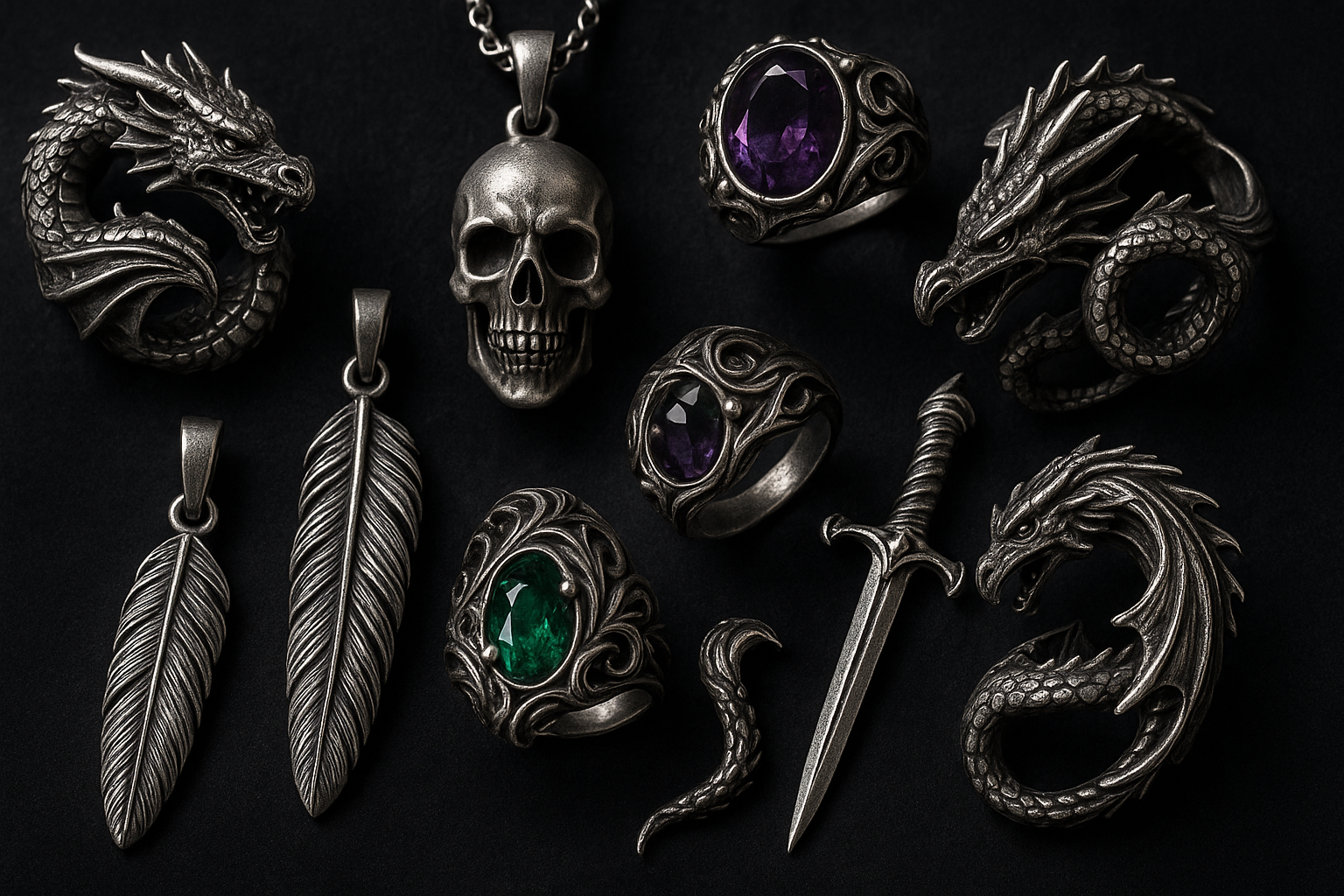Shop handcrafted gothic silver necklaces and pendants by CHICBLOOM. Featuring dragons, skulls,...